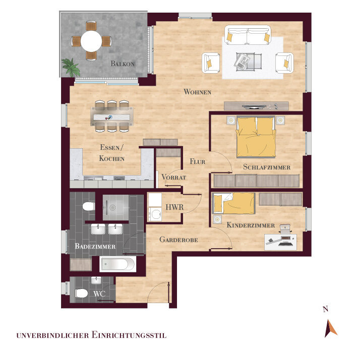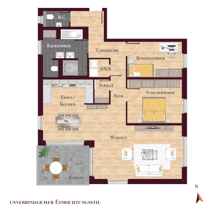 WohnungWohnflächeGeschossBalkon/TerrasseStatus